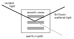 Brillouin ScatteringScattering of light from acoustic modes is called Brillouin scattering. From a strictly classical point of view, the compression of the medium will change the index of refraction and therefore lead to some reflection or scattering at any point where the index changes. From a quantum point of view, the process can be considered one of interaction of light photons with acoustic or vibrational quanta (phonons). Two examples will provide some context for this phenomenon. ![]() |
