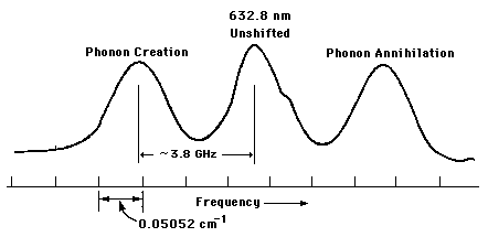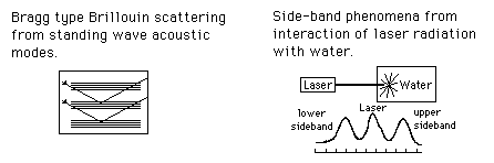 Laser-Water ScatteringBenedek, et al., reported the production of sidebands from the interaction of a helium-neon laser with water. This can be considered to be Brillouin scattering. ![]() |