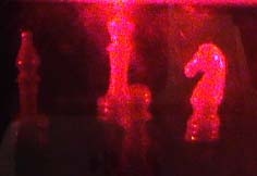 | The image on the film for a transmission hologram is formed by the interference of the light from the object and the reference beam. This interference pattern looks something like the ripples on a pond when a bunch of small pebbles is thrown in. The interference pattern on this hologram is extraordinarily well defined.