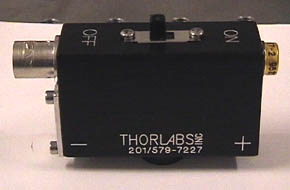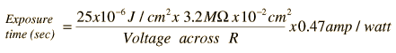 For our holography experiments, it is important to optimize exposure for the film used. The film emulsion was Agfa 8E75HD which has optimum exposure at 25 microjoules/cm2. The Thorlabs detector shown above is rated at 0.47 amps/watt at 640 nm, so this sensitivity was used in calculating exposures. Since the detector area is 0.01 cm2, the exposure time in seconds is calculated from ![]() When we measured the light directly from the reference beam at the film position, and then added the light from the object, we found that we got better exposures by increasing the exposure 2 stops. That is, we multiplied the calculated time by four. |