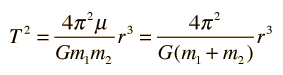 This leads to Kepler's 3rd law (the Law of Orbits) which is useful for the analysis of the orbits of moons and binary stars. Since the period T of the orbit is given by ![]() ![]() ![]() If we use the convenient astronomical units