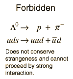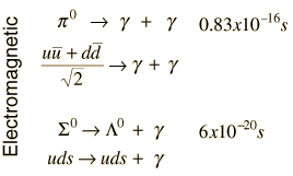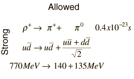 If the quark content on the two sides matches and the decay conserves energy, baryon number, and charge, then it will tend to decay very rapidly, on the order of 10-22 seconds. Note that the quark-antiquark pairs which constitute the p0 can be created if there is sufficient energy available in the decay. |