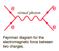 PhotonPhoton is the name given to a quantum of light or other electromagnetic radiation. The photon energy is given in the Planck relationship. The photon is the exchange particle responsible for the electromagnetic force. The force between two electrons can be visualized in terms of a Feynman diagram as shown below. The infinite range of the electromagnetic force is owed to the zero rest mass of the photon. While the photon has zero rest mass, it has finite momentum, exhibits deflection by a gravity field, and can exert a force.