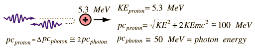 So it is clear that there are no electrons in the nucleus. An experimental breakthrough came in 1930 with the observation by Bothe and Becker that bombardment of beryllium with alpha particles from a radioactive source produced neutral radiation which was penetrating but non-ionizing. They presumed it was gamma rays, but Curie and Joliot showed that when you bombarded a paraffin target with this radiation, it ejected protons with energy about 5.3 MeV. This proved to be inconsistent with gamma rays, as can be shown from momentum and energy analysis: ![]() This analysis follows that for a headon elastic collision where a small particle strikes a much more massive one. Again, the necessary energy for the gamma ray explanation was much greater than any energy observed to be available from the nucleus, so the neutral radiation must be some kind of neutral particle. The 5.3 MeV energy of the ejected protons could be easily explained if the neutral particle had a mass comparable to that of the proton. For headon collisions, this would require only 5.3 MeV from the neutral particle, a value in the range of observed nuclear particle emissions.