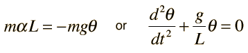 Pendulum EquationThe equation of motion for the simple pendulum for sufficiently small amplitude has the form