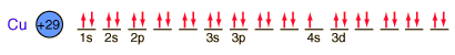 Copper is one of the few exceptions to the general order of filling of electron orbitals, filling all ten 3d states before it fills the second 4s state.