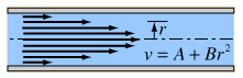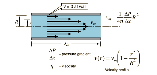 Velocity Profile for Tube FlowThe relationship governing the velocity as a function of distance r from the center of a tube under conditions of laminar flow is: