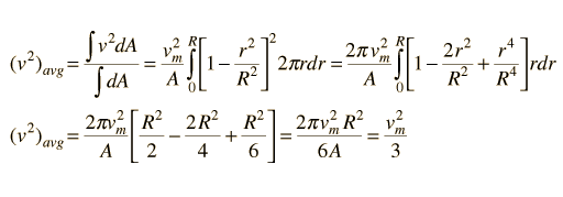 Kinetic Energy of Tube FlowTo get the kinetic energy of laminar flow in a tube, an average of the square of the velocity must be taken to account for the velocity profile.