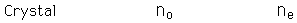 Some Birefringent MaterialsTwo indices of refraction characterize birefringent materials. Such materials form uniaxial crystals, and may be characterized as positive or negative uniaxial crystals based on the comparison of the indices.