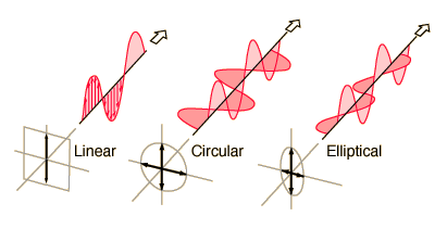 Classification of PolarizationLight in the form of a plane wave in space is said to be linearly polarized. Light is a transverse electromagnetic wave, but natural light is generally unpolarized, all planes of propagation being equally probable. If light is composed of two plane waves of equal amplitude by differing in phase by 90°, then the light is said to be circularly polarized. If two plane waves of differing amplitude are related in phase by 90°, or if the relative phase is other than 90° then the light is said to be elliptically polarized. ![]()