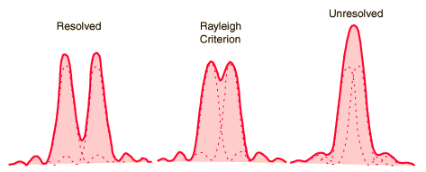 The Rayleigh criterion is the generally accepted criterion for the minimum resolvable detail - the imaging process is said to be diffraction-limited when the first diffraction minimum of the image of one source point coincides with the maximum of another.