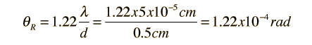 The Rayleigh criterion for diffraction-limited vision for an iris diameter of 5 mm and a wavelength of 500 nm is:
