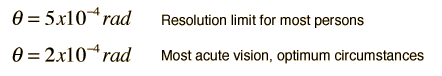This is another example of the remarkable nature of human senses: the most acute vision is within about a factor of two of the physical limits imposed by diffraction!