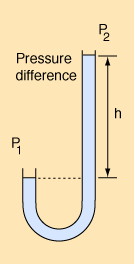 Fluid Pressure MeasurementSince static fluid pressure is determined by the fluid density and depth, the depth or height difference of a given liquid is commonly used for pressure measurement: ![]()