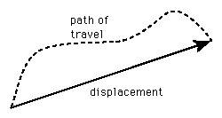 The vector change in position associated with a motion is called the displacement.