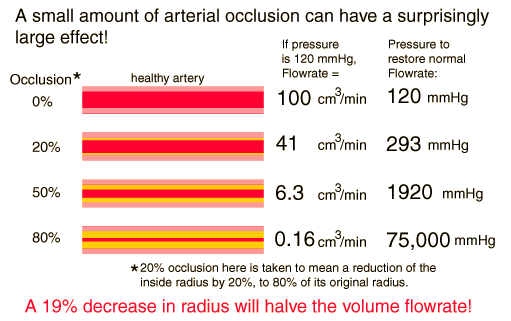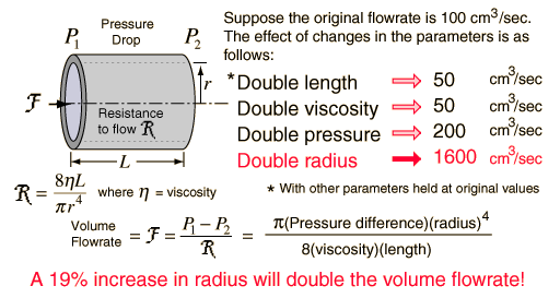 Poiseuille's LawThe biggest surprise in the application of Poiseuille's law to fluid flow is the dramatic effect of changing the radius. ![]() A decrease in radius has an equally dramatic effect, as shown in blood flow examples. Poiseuille's Law calculation |