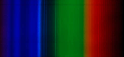 The iodine spectrum spreads throughout the visible colors with multiple bands that are barely resolvable at this resolution. ![]() |