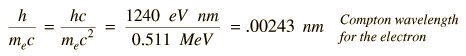 ![]() The scattering of photons from charged particles is called Compton scattering after Arthur Compton who was the first to measure photon-electron scattering in 1922. When the incoming photon gives part of its energy to the electron, then the scattered photon has lower energy and according to the Planck relationship has lower frequency and longer wavelength. The wavelength change in such scattering depends only upon the angle of scattering for a given target particle. The constant in the Compton formula above can be written ![]() and is called the Compton wavelength for the electron. The formula presumes that the scattering occurs in the rest frame of the electron. This exploration is designed to accept values for the input wavelength or energy and the angle of scattering. Unspecified parameters will default to the case of molybdenum K-alpha xrays scattering at 90 degrees, one of Compton's historical results. Any of these input values can be changed.