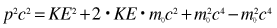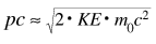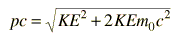 Usefulness of the Quantity pcThe relativistic energy expression for a particle is: ![]() which reduces to E = pc for photons . The quantity pc is proportional to the relativistic momentum but has energy units, and it is useful in many high energy calculations. Using ![]() and ![]() an expression for pc in terms of the relativistic kinetic energy can be obtained: ![]() ![]()