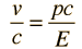 For less than 1% error this requires electron energies over 3.2 MeV and proton energies over 5.8 GeV. A useful application of the quantity pc is in the calculation of the velocity as a fraction of c.