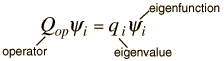 Eigenvalues and EigenfunctionsThe wavefunction for a given physical system contains the measurable information about the system. To obtain specific values for physical parameters, for example energy, you operate on the wavefunction with the quantum mechanical operator associated with that parameter. The operator associated with energy is the Hamiltonian, and the operation on the wavefunction is the Schrodinger equation. Solutions exist for the time independent Schrodinger equation only for certain values of energy, and these values are called "eigenvalues*" of energy. Corresponding to each eigenvalue is an "eigenfunction*". The solution to the Schrodinger equation for a given energy ![]() The eigenvalue concept is not limited to energy. When applied to a general operator Q, it can take the form ![]() if the function