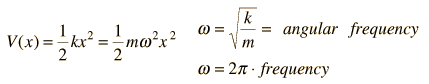 Quantum Harmonic Oscillator: Schrodinger EquationThe Schrodinger equation for a harmonic oscillator may be obtained by using the classical spring potential ![]() The Schrodinger equation with this form of potential is ![]() Since the derivative of the wavefunction must give back the square of x plus a constant times the original function, the following form is suggested: ![]() Note that this form (a Gaussian function) satisfies the requirement of going to zero at infinity, making it possible to normalize the wavefunction. Substituting this function into the Schrodinger equation and fitting the boundary conditions leads to the ground state energy for the quantum harmonic oscillator: