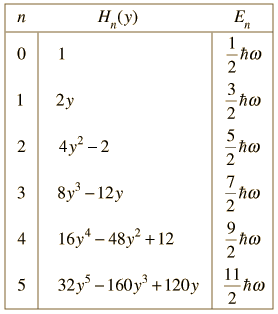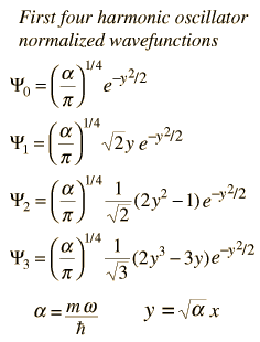 The wavefunctions for the quantum harmonic oscillator contain the Gaussian form which allows them to satisfy the necessary boundary conditions at infinity. In the wavefunction associated with a given value of the quantum number n, the Gaussian is multiplied by a polynomial of order n (the Hermite polynomials above) and the constants necessary to normalize the wavefunctions.