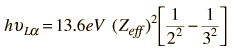 Moseley's Modeling of X-ray FrequenciesMoseley's empirical formula for K-alpha x-rays when adapted to the Bohr model becomes ![]() The implication of this relationship is that the single electron in the K-shell before the emission is almost 100% effective in shielding the nucleus so that the electron from the L-shell sees an effective nuclear charge of Z-1. We can use this relationship to calculate approximate quantum energies and wavelengths for K-alpha x-rays. For example, this calculation for Z=42 gives a wavelength of 0.0722 nm for the molybdenum K-alpha x-ray whereas the measured value is 0.0707 nm. So the agreement is reasonable for K-alpha x-rays even though the upper level of the transition experiences some shielding which is unaccounted for in this model. For transitions ending in higher shells, the shielding situation becomes much more complex. From the Bohr model, we might write an equation for an L-alpha x-ray as ![]() Moseley found that his data for the L-alpha x-rays fit the empirical relationship ![]() so that the best fit to the data was with Z-7.4, indicating a shielding corresponding to 7.4 electrons on the average inside the M-shell from which the electron originated.