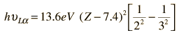 ![]() When the square root of the frequencies of the characteristic x-rays from the elements is plotted against the atomic number, a straight line is obtained. In his early 20's, Moseley measured and plotted the x-ray frequencies for about 40 of the elements of the periodic table. He showed that the K-alpha x-rays followed a straight line when the atomic number Z versus the square root of frequency was plotted. With the insights gained from the Bohr model, we can write his empirical relationship as follows: ![]()