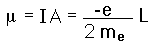 Electron Orbit Magnetic MomentFrom the classical expression for magnetic moment, m = IA, an expression for the magnetic moment from an electron in a circular orbit around a nucleus can be deduced. It is proportional to the angular momentum of the electron. The effective current is