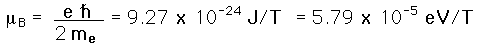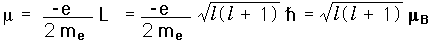 Orbital Magnetic MomentThe magnetic moment associated with an electron orbit is given by ![]() Taking into account the quantization of angular momentum for such orbits, the magnitude of the magnetic moment can be written ![]() A unit of magnetic moment called the "Bohr magneton" is introduced here. ![]() The z-component of the magnetic moment is given by ![]()