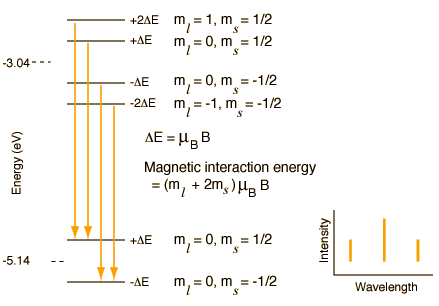 For reference, the sodium Zeeman effect is reproduced below to show the nature of the magnetic interaction for weak external magnetic fields. ![]() The following is a model of the changes in the pattern if the magnetic field were strong enough to decouple L and S. The resulting spectrum would be a triplet with the center line twice the intensity of the outer lines. ![]() To create this pattern, the projections of L and S in the z-direction have been treated independently and the ms multiplied by the spin g-factor. The energy shift is expressed as a multiple of the Bohr magneton mB. The selection rules explain why the transitions shown are allowed and others not.