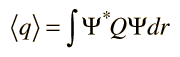 Expectation Value PostulateFor a physical system described by a wavefunction y , the expectation value of any physical observable q can be expressed in terms of the corresponding operator Q as follows: ![]() It is presumed here that the wavefunction is normalized and that the integration is over all of space. This postulate follows along the lines of the operator postulate and the basis set postulate. The function can be represented as a linear combination of eigenfunctions of Q, and the results of the operation gives the physical values times a probability coefficient. Since the wavefunction is normalized, the integral gives a weighted average of the possible observable values.