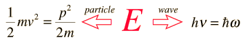 The connection to the Schrodinger equation can be made by examining wave and particle expressions for energy: