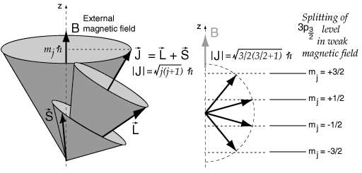Even with the vector model, the determination of the magnitude of the Zeeman spliting is not trivial since the directions of S and L ar constantly changing as they precess about J. This problem is handled with the Lande' g-factor.