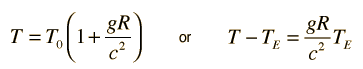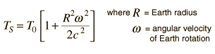 Note that the "earth center" time has been replaced by the surface time in this expression. This is a valid approximation in this case since the time difference is many orders of magnitude smaller than the time itself, and this allows us to model the difference between two measurable times. |