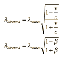 Doppler Expression ExpansionTo get a simplified expression for the Doppler frequency expression, the square root in the expression ![]() can be expanded using the binomial expansion as ![]() For low speeds where v << c, the first two terms give a good approximation of the Doppler shift: ![]()