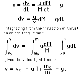Rocket in SpaceUnder the influence of the rocket thrust in a gravity-free environment, the resulting velocity can be calculated from"