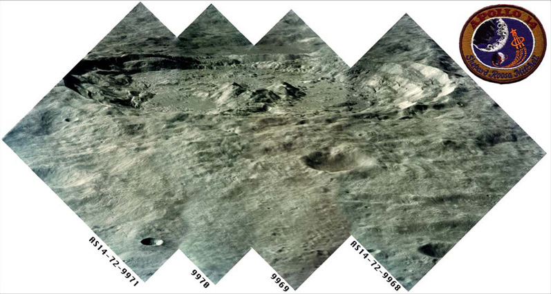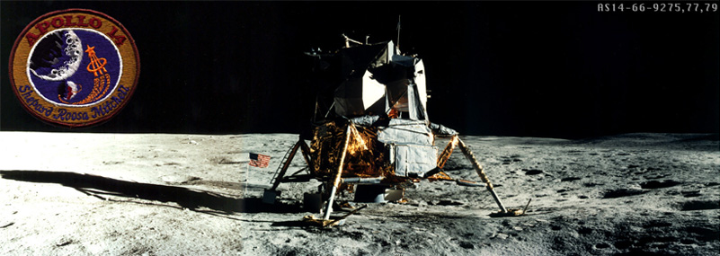 Apollo 14![]() Launched on January 31, 1971, Apollo 14 was successful despite docking problems and other glitches that threatened the landing. It boasted color video images of the Moon and the first materials sciences experiments on the Moon during its two EVAs. The astronauts for this third manned lunar landing were Alan Shepard, Stuart Roosa, and Edgar Mitchell. The lander touched down within 50 meters of its target point in the Fra Mauro highlands. On their first EVA they depolyed a solar wind composition experiment, the Laser Ranging Retro Reflector (LRRR) and the Apollo Lunar-Surace Experiments Package (ALSEP). On the second EVA they did a detailed exploration of a small crater called Cone Crater. They experienced about 3 km of travel in rocky terrain in the Moon's gravity which is 1/6 that of Earth. ![]() A mosaic of King Crater After liftoff, they crashed the lunar ascent stage into the lunar surface between the seismometers placed by Apollo 12 and Apollo 14. The resulting seismic signals lasted for an hour and a half and were detected by both instruments. ![]() The images and text are extracted from the NASA sites, which may be consulted for more details. Online references: NASA's Apollo Program site Apollo 14 Mission |