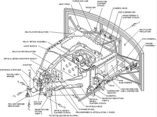 Diagram of Wide Field and Planetary CameraThis new version of the Wide Field and Planetary Camera was installed on the Hubble Space Telescope during the December 1993 repair mission. This is a line drawing of the camera ![]()