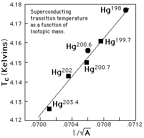 If electrical conduction in mercury were purely electronic, there should be no dependence upon the nuclear masses. This dependence of the critical temperature for superconductivity upon isotopic mass was the first direct evidence for interaction between the electrons and the lattice. This supported the BCS theory of lattice coupling of electron pairs.