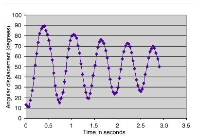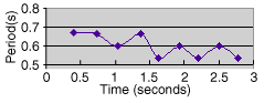 ![]() The damping of the oscillatory motion of the levitated magnet was investigated by taking digital video of the motion and converting it to a Quicktime movie. Measurements from the Quicktime movie were made at 1/30 sec intervals using VideoPoint. The data was transferred to an Excel spreadsheet to make the plots. For a first approximation, the motion could be modeled as a damped sine wave: ![]() Analysis of the damping in the illustration above gives a damping coefficient of 0.247. This number was obtained by doing a least-squares fit of the peaks of the damped oscillation. Closer examination reveals that the period of the damped motion is changing, as illustrated below.