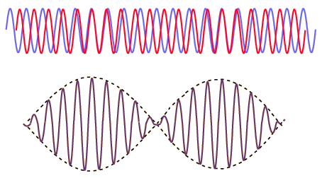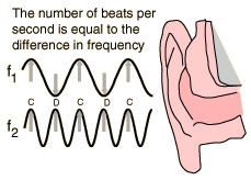 BeatsWhen two sound waves of different frequency approach your ear, the alternating constructive and destructive interference causes the sound to be alternatively soft and loud - a phenomenon which is called "beating" or producing beats. The beat frequency is equal to the absolute value of the difference in frequency of the two waves.