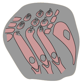filled tympanic and vestibular canals. There are some 16,000 -20,000 of the hair cells distributed along the basilar membrane which follows the spiral of the cochlea.
