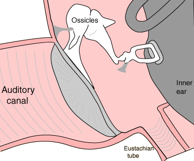 The Tympanic MembraneThe tympanic membrane or "eardrum" receives vibrations traveling up the auditory canal and transfers them through the tiny ossicles to the oval window, the port into the inner ear.