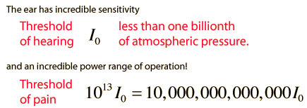 Threshold of HearingSound level measurements in decibels are generally referenced to a standard threshold of hearing at 1000 Hz for the human ear which can be stated in terms of sound intensity: ![]() or in terms of sound pressure: ![]() This value has wide acceptance as a nominal standard threshold and corresponds to 0 decibels. It represents a pressure change of less than one billionth of standard atmospheric pressure. This is indicative of the incredible sensitivity of human hearing. The actual average threshold of hearing at 1000 Hz is more like 2.5 x 10-12 watts/m2 or about 4 decibels, but zero decibels is a convenient reference. The threshold of hearing varies with frequency, as illustrated by the measured hearing curves. |