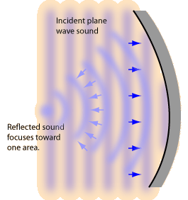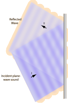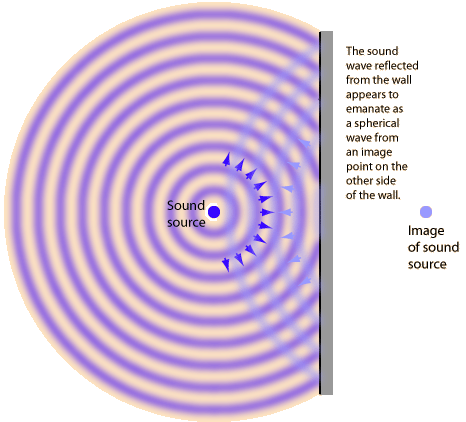 When sound waves from a point source strike a plane wall, they produce reflected spherical wavefronts as if there were an "image" of the sound source at the same distance on the other side of the wall.