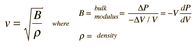 The speed of sound for a uniform medium is determined by its elastic property (bulk modulus) and its density