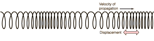 A single-frequency sound wave traveling through air will cause a sinusoidal pressure variation in the air. The air motion which accompanies the passage of the sound wave will be back and forth in the direction of the propagation of the sound, a characteristic of longitudinal waves.