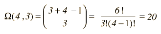 ![]() The conceptual Einstein solid is useful for examining the idea of multiplicity in the distribution of energy among the available energy states of the system. All of the energy levels are considered to be equally probable within the constraint of having q units of energy and N oscillators. As an example, consider q=3 units of energy distributed in an Einstein solid with N=4 oscillators.
